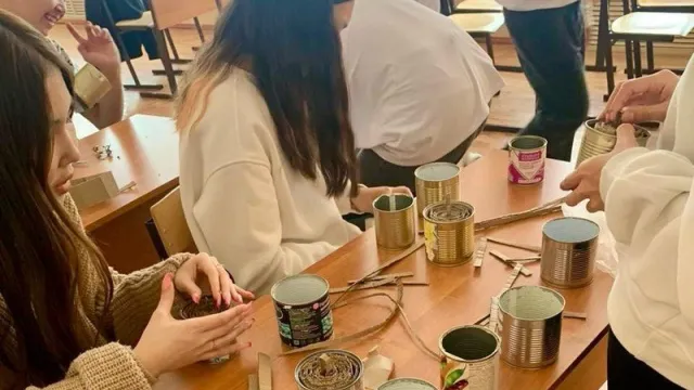 Учащиеся Жан-Аульской школы в Камызякском районе Астраханской области изготавливают блиндажные свечи для бойцов специальной военной операции (СВО).