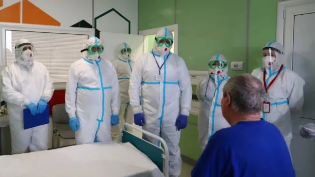 В настоящее время в этом ковидном госпитале лечатся 128 пациентов, из них 12 человек в реанимации и 1 на ИВЛ. Свободны всего 22 койки.