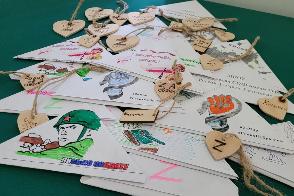 Кроме того, учащиеся СОШ им. Героя России Азамата Тасимова передали для военнослужащих письма со словами поддержки и талисманы, созданные своими руками.