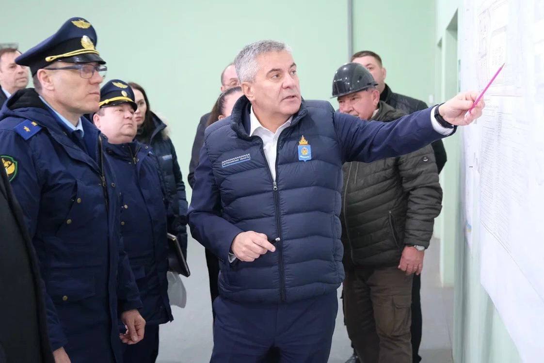 Он проинспектировал соблюдение графика производственных работ и заслушал отчёты об этапах строительства.