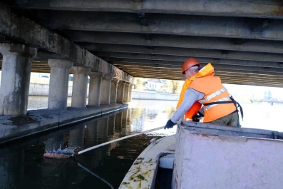 Очистка каналов с лодки продолжится до поздней осени, а затем уборку продолжат с берега.