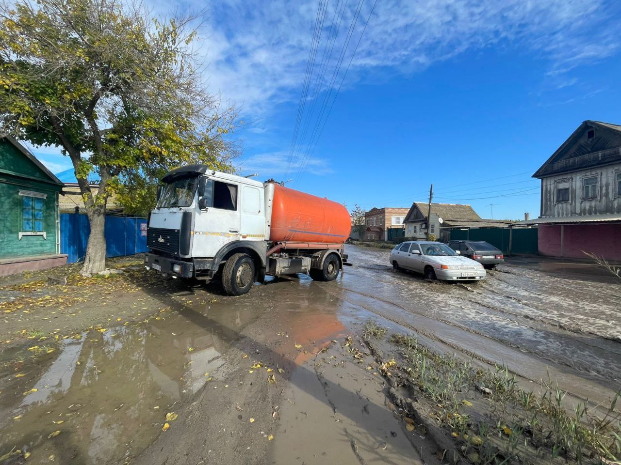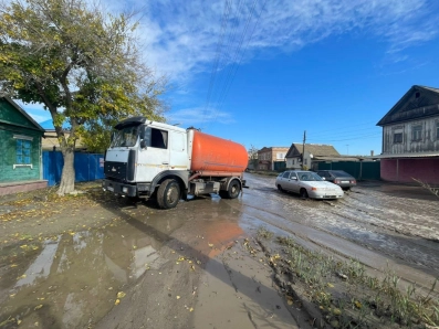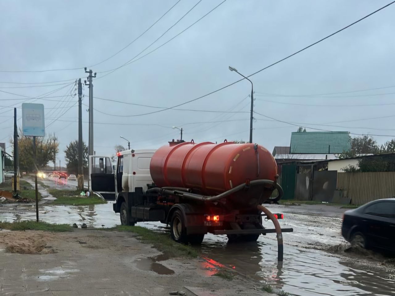 Коммунальщики откачивают дождевую воду на улицах Астрахани