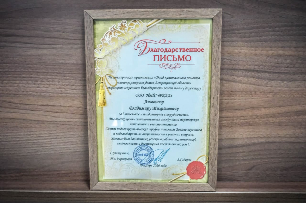 Мы получили благодарственное письмо в рамках сотрудничества с Фондом капитального ремонта Астраханской области. Также было получено благодарственное письмо от МЧС Астраханской области за помощь в проведении мероприятий.