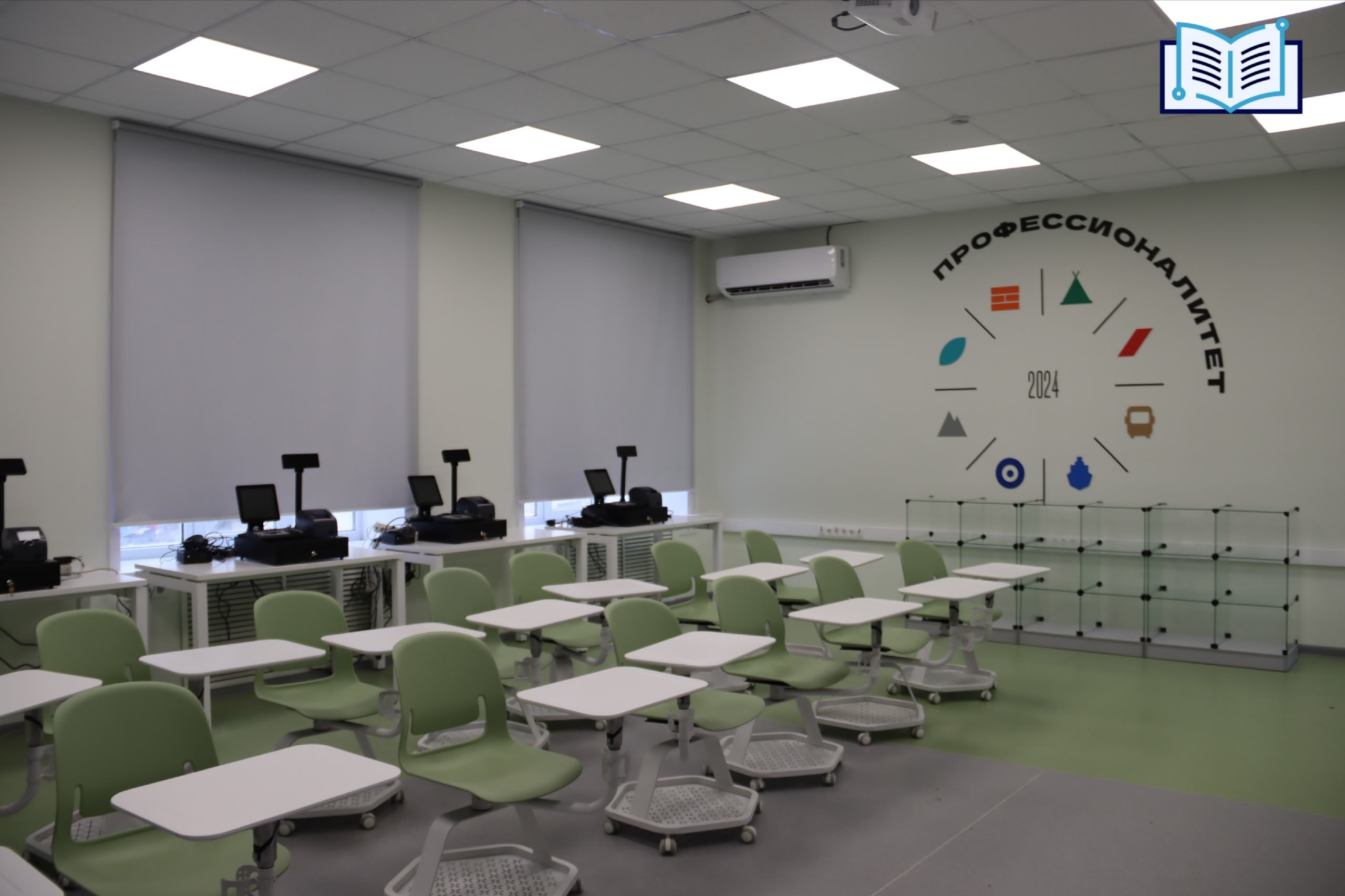 Отмечается, что на платформе колледжа реализуется федеральный проект «Профессионалитет» нацпроекта «Молодёжь и дети», и потому в обновлённом корпусе теперь есть спецлаборатории кадровой подготовки по самым востребованным на сегодня специальностям – «Поварское и кондитерское дело», «Туризм», «Гостиничное дело», «Торговое дело», «Операционная деятельность в логистике» – и 11 современных мастерских.