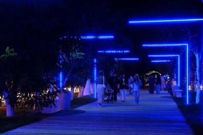Отмечается, что за счёт подрядчика дополнительно появились амфитеатр, паровой фонтан, входная арка с подсветкой и проекциями, а также подсветка деревьев и светящиеся дольмены.