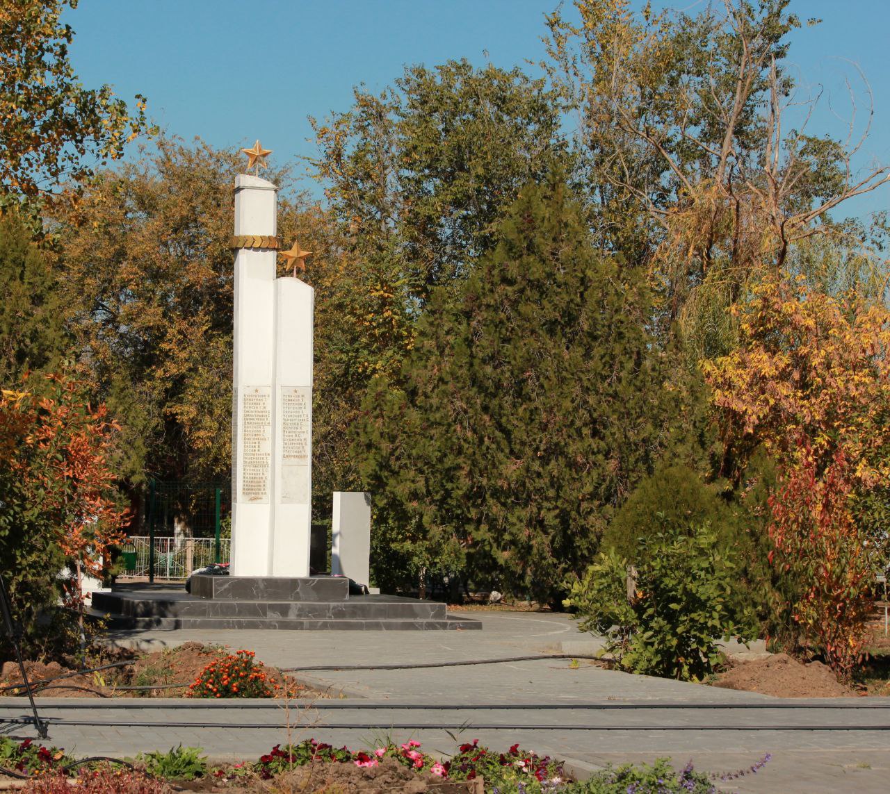 В рамках 1-го этапа уложена тротуарная плитка, смонтировали ограждение, а также установлены памятные керамогранитные плиты с именами и портретами жителей села, погибших в зоне СВО.