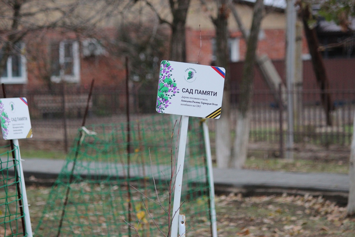 Отмечается, что парк находится рядом с обелиском памяти погибших героев Великой Отечественной войны и «Садом Памяти» в честь героев СВО.