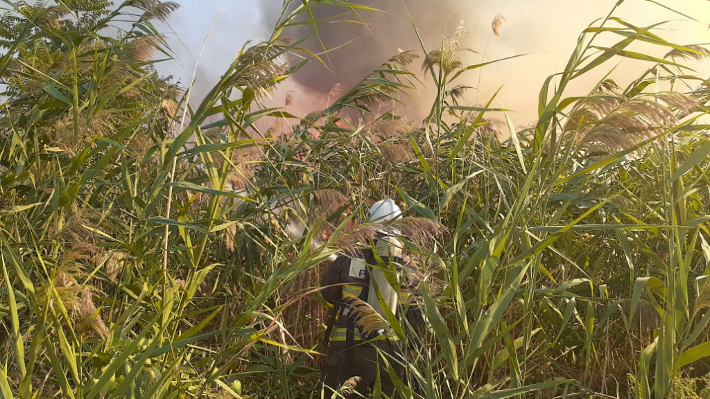 Как сообщили в пресс-службе ведомства, огнем были повреждены два неэксплуатируемых здания, стена и кровля одноэтажного жилого дома, хозпостройка, сухая растительность и камыш на общей площади 250 кв. метров.