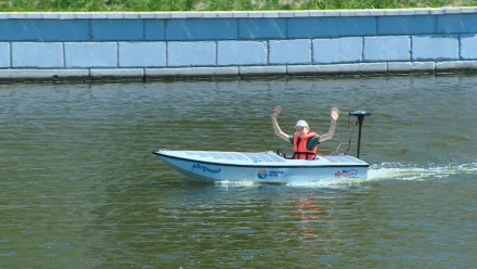 «Чистая речка − это здорово. Ходишь себе. Управлять лодкой − это всегда очень приятно и здорово. На самом деле пилотирование этой лодки довольно лёгкое, то есть здесь есть руль и переключатель скорости», − рассказывает ученик регионального школьного технопарка Фёдор Байбеков.