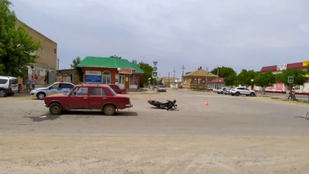 В Астраханской области мотоциклист без прав и шлема попал в ДТП