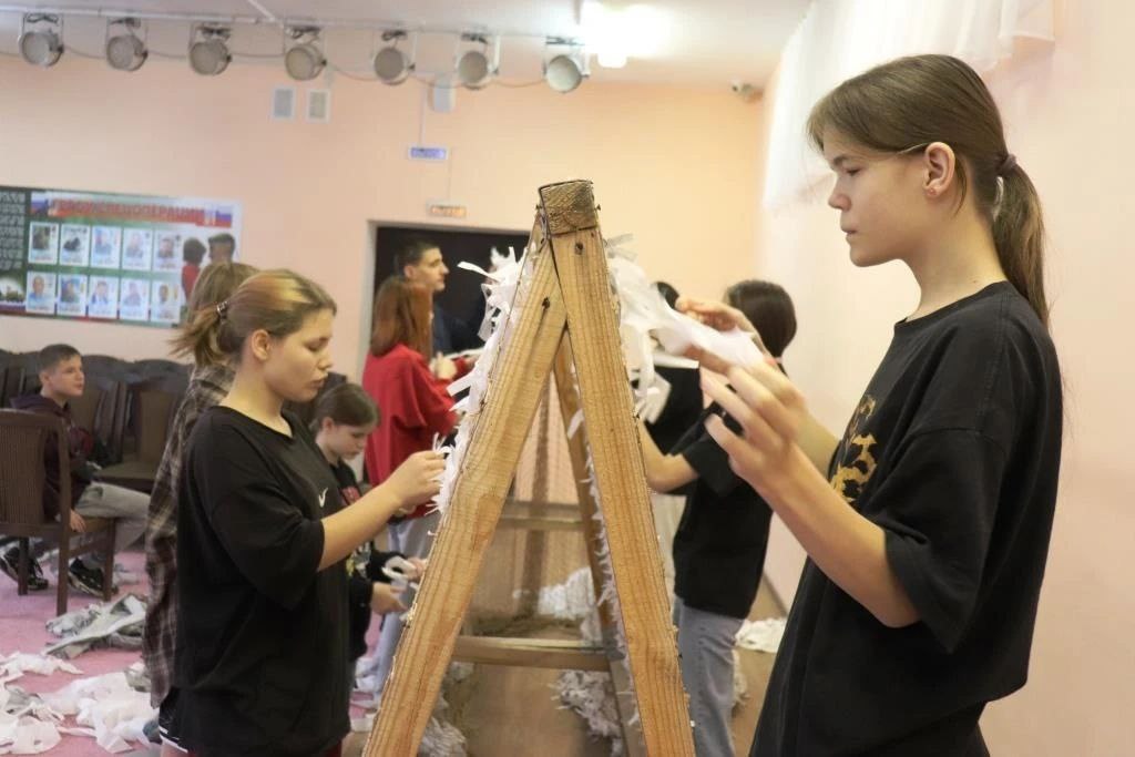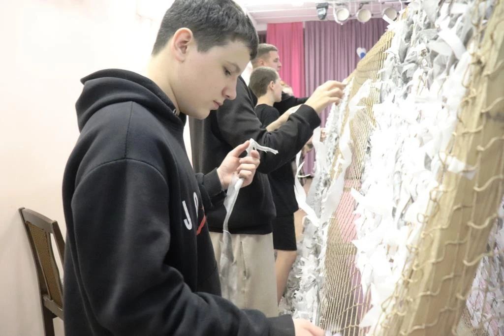 Воспитанники астраханского соццентра плетут зимние масксети для бойцов СВО
